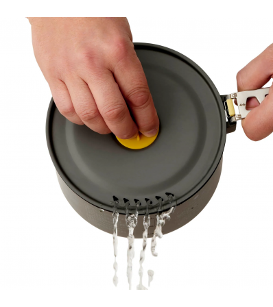 The Frontier Ultralight Pots are made of the highest quality hard-anodized aluminium alloy for durability and efficient heat transfer so you can go anywhere. Elevate your cooking experience with a ceramic non-stick coating, clever strainer holes in the pot lid, and a LidKeep that allows you to clip the lid to the side of the pot to free up a hand for stirring or seasoning. A Click-Safe handle provides a solid grip that can be reversed to hold the lid and any nesting contents in place during transport.