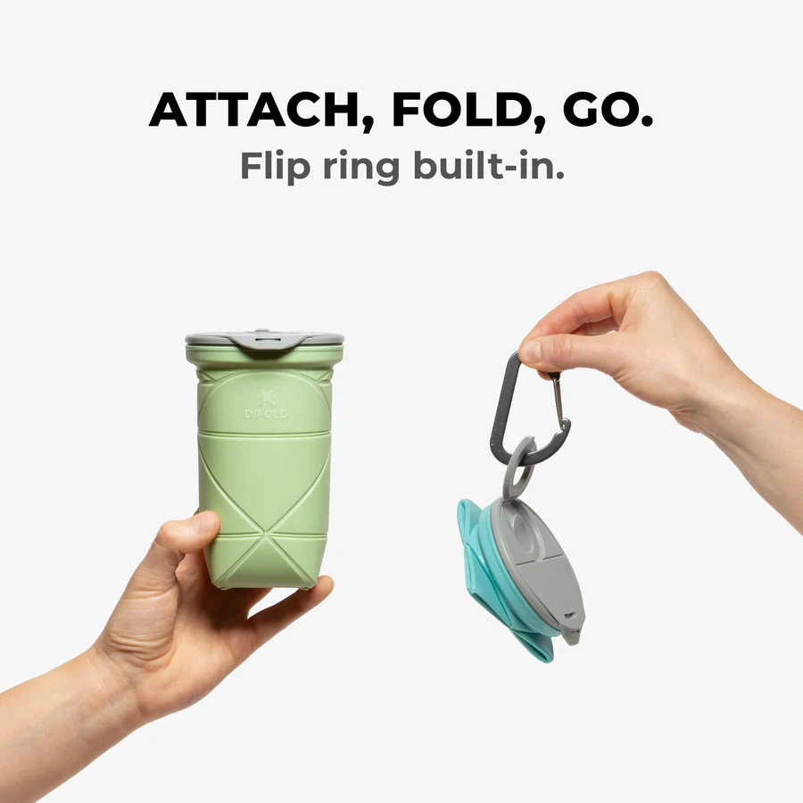 Оригами сгъваема чаша с двойно изолираща, непропусклива капачка. Подходяща за всякакви топли и студени напитки.